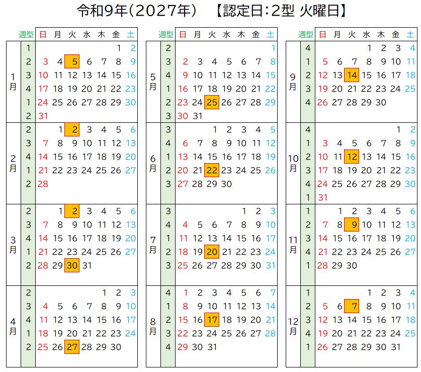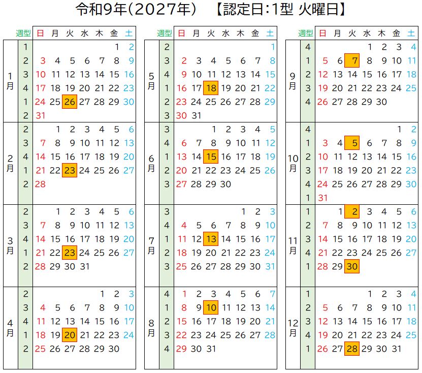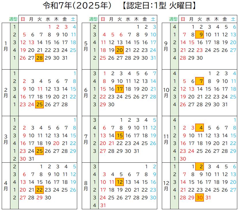 雇用保険の基本手当(失業時の給付)は4週間(28日)ごとにハローワークに出頭し、失業認定を受けることによって支給されます。そのため、ハローワークでは4週おきに「週型」を定めて、認定日を決定しています(原則として最初に離職票を提出した日を基準として決める)。