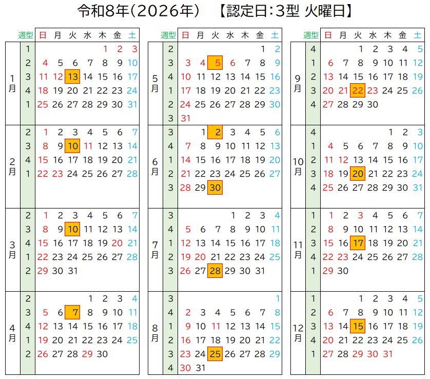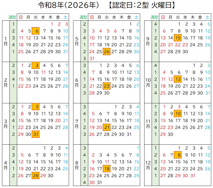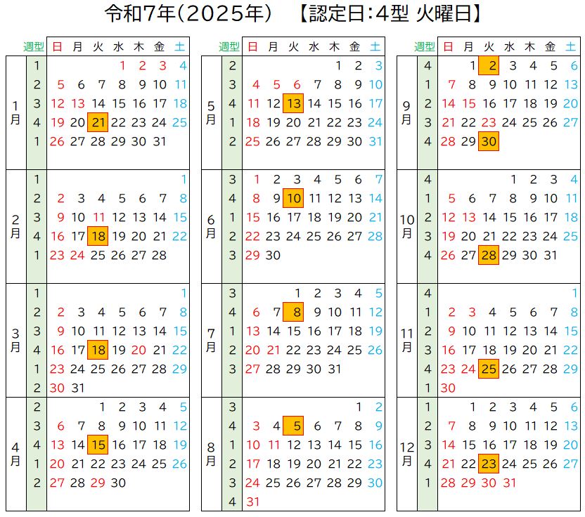 失業認定日の週型と曜日は、ハローワークの混雑緩和のため、雇用保険基本手当(失業手当)の受給者を20のグループに分けたものです。「火曜日」の場合は毎回の失業認定日が火曜日に固定されます。4週おきに「1型」「2型」「3型」「4型」のグループに分かれます。