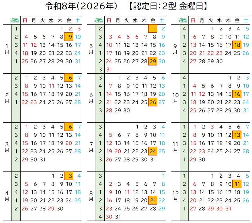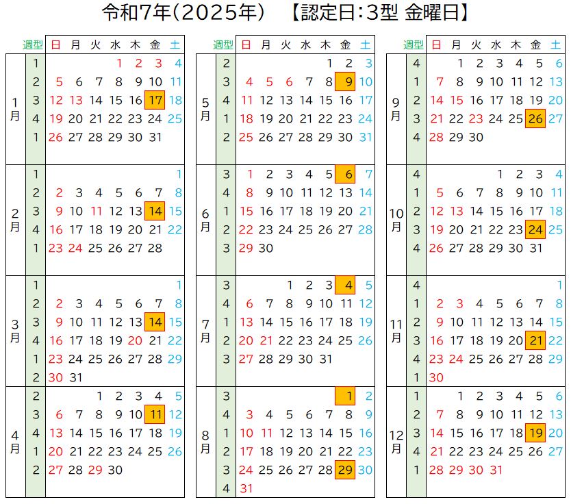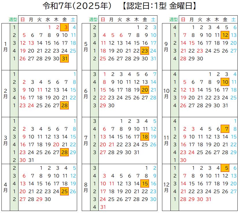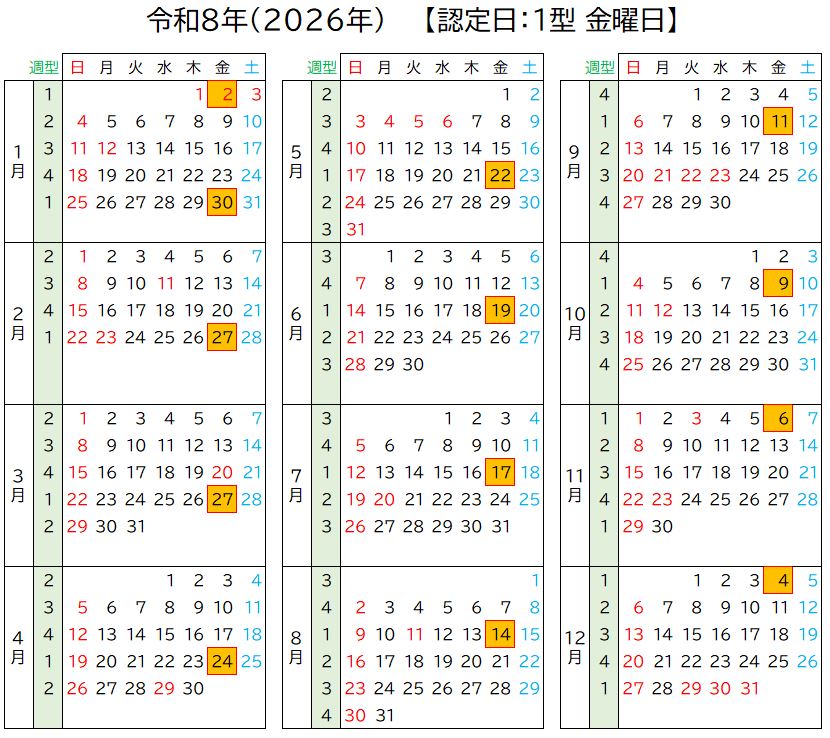 失業認定日の週型と曜日は、ハローワークの混雑緩和のため、雇用保険基本手当(失業手当)の受給者を20のグループに分けたものです。「金曜日」の場合は毎回の失業認定日が金曜日に固定されます。4週おきに「1型」「2型」「3型」「4型」のグループに分かれます。