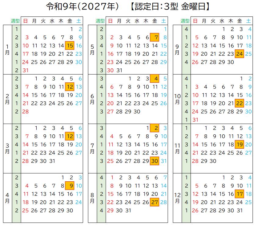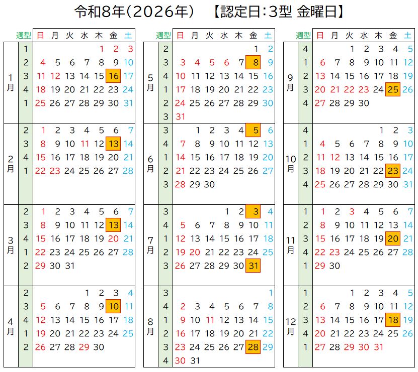 雇用保険の基本手当(失業時の給付)は4週間(28日)ごとにハローワークに出頭し、失業認定を受けることによって支給されます。そのため、ハローワークでは4週おきに「週型」を定めて、認定日を決定しています(原則として最初に離職票を提出した日を基準として決める)。