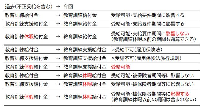 - 教育訓練給付金、教育訓練支援給付金の不正受給処分があっても、教育訓練休暇給付金の受給に影響はありません。