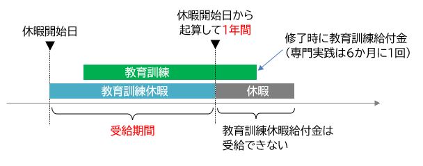 教育訓練休暇給付金が支給されるのは休暇開始日から起算して原則として1年以内(受給期間)ですが、教育訓練自体は1年で終わる必要はありません。
